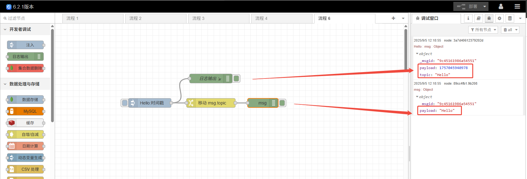 [{"id":"d11f7311.77c15","type":"inject","z":"714695530b415411","name":"","props":[{"p":"payload"},{"p":"topic","vt":"str"}],"repeat":"","crontab":"","once":false,"onceDelay":"","topic":"Hello","payload":"","payloadType":"date","x":310,"y":260,"wires":[["13c01487.eb13cb"]]},{"id":"13c01487.eb13cb","type":"change","z":"714695530b415411","name":"","rules":[{"t":"move","p":"topic","pt":"msg","to":"payload","tot":"msg"}],"action":"","property":"","from":"","to":"","reg":false,"x":510,"y":260,"wires":[["89cc4fb1.9b208"]]},{"id":"89cc4fb1.9b208","type":"debug","z":"714695530b415411","active":true,"console":"false","complete":"false","x":700,"y":260,"wires":[]}]